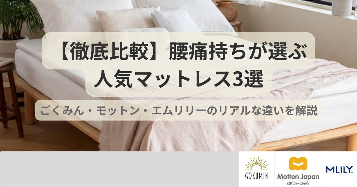今回は、口コミ評価が高く、SNSでも話題のごくみん・モットン・エムリリーの3ブランドを、寝心地・硬さ・価格・口コミの4軸で徹底比較してみました!
